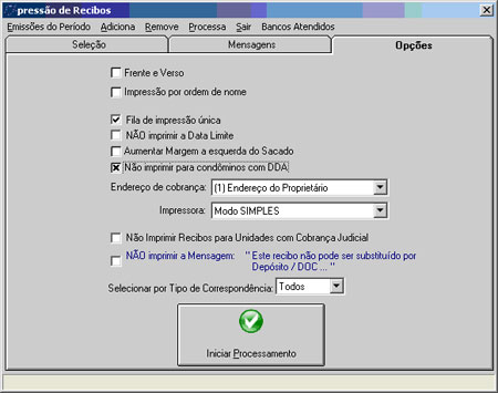 – Quando marcada, não serão impressos os boletos para as unidades optantes do DDA.