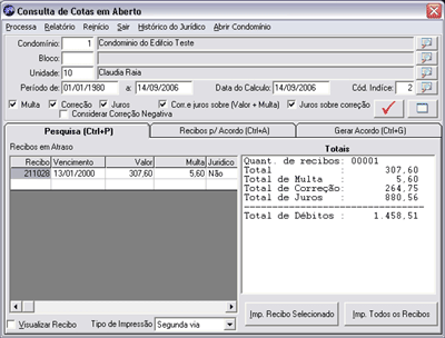 Recibo” e selecione um recibo no quadro “Recibos em Atraso”,