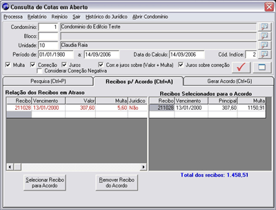 Clique na aba “Recibos p/ Acordo (Ctrl+A)”
