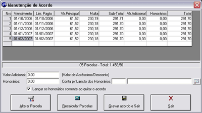 o botão “Seleciona Recibo para Acordo” (Repita esse passo